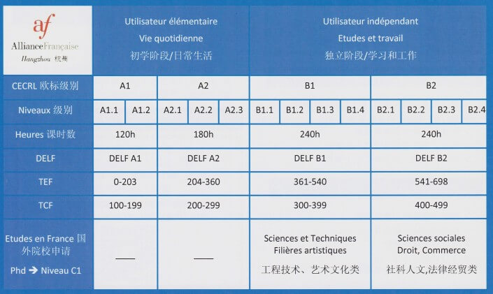 根据杭州法语联盟的课程设定,点击此处了解您需要学习多久才能达到你想要的法语水平并能够成功地通过官方的法语考试。