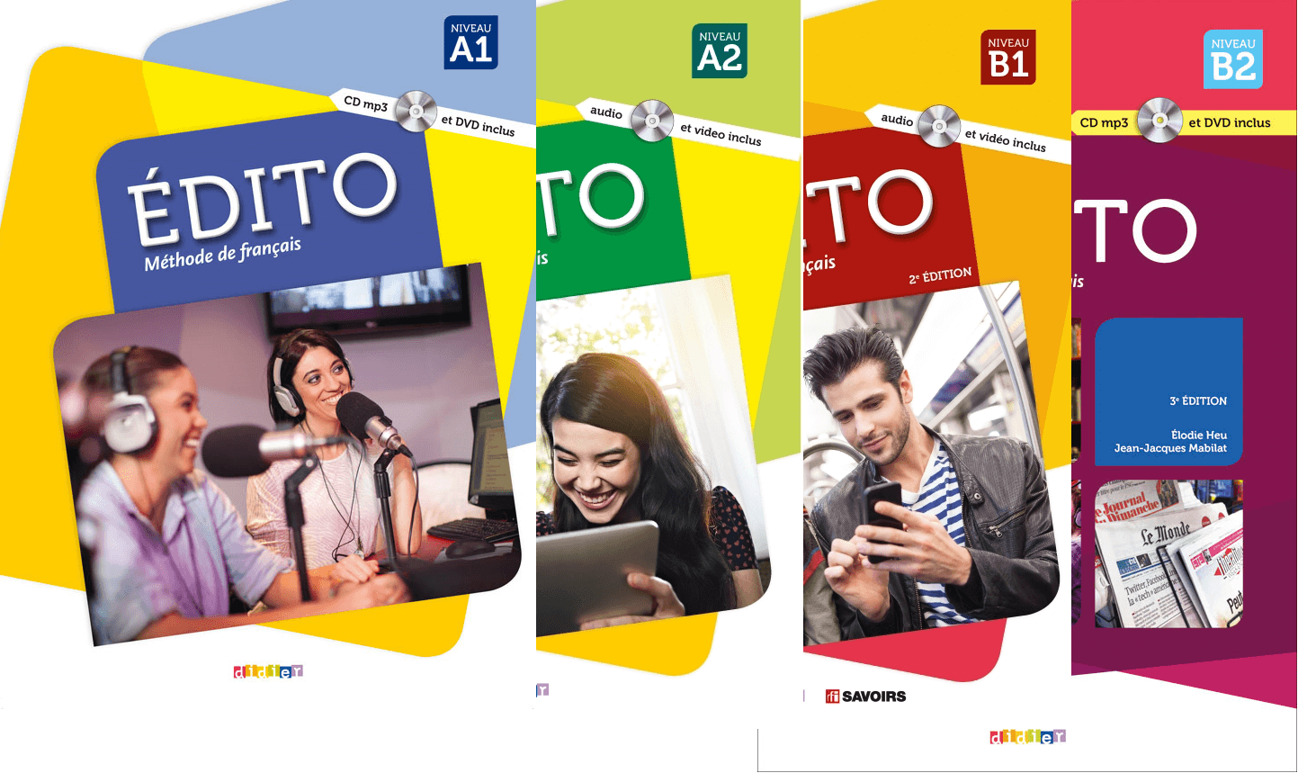 Nous utilisons les manuels de la gamme Edito pour tous nos niveaux. Il s'agit d'une méthode communicative comportant des sujets d'actualité